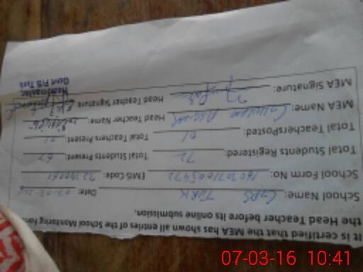 | Certified that this School was Inspected by the Undersigned MEA/DMO Today and the Information Stated Above is as Per Record. | |||||