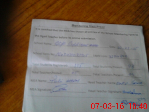 | Attendance Register | Head Teacher | MEA with School | Visit Proof |