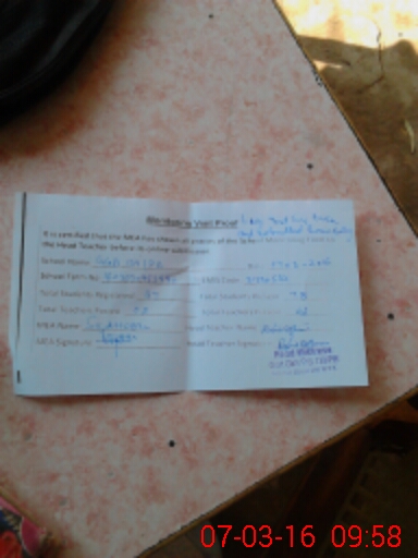 | Attendance Register | Head Teacher | MEA with School | Visit Proof |