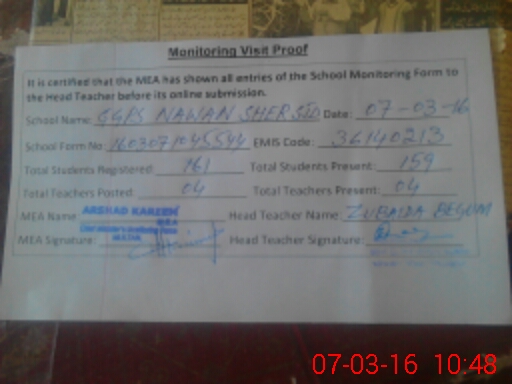 | EMIS Code: 36120213 | Name of School: GGPS NAWAN SHER SHUJABAD DISTT. MULTAN | |||