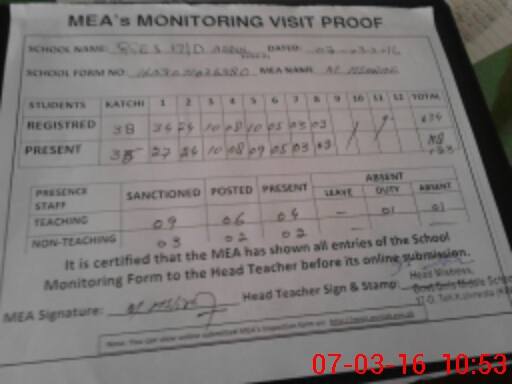 | Attendance Register | Head Teacher | MEA with School | Visit Proof |