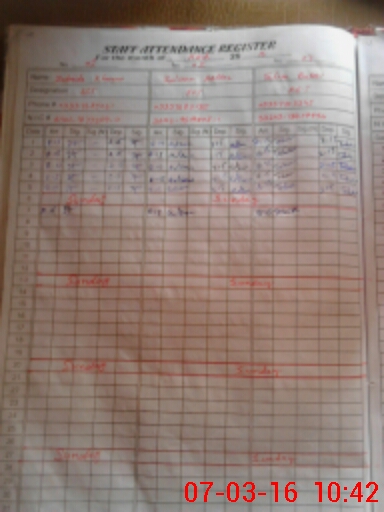 | CNIC | Full Name | Designation | R/C | Absence During Last Calender Month |