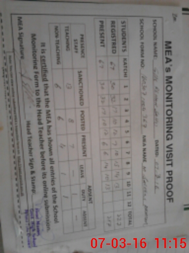 | Certified that this School was Inspected by the Undersigned MEA/DMO Today and the Information Stated Above is as Per Record. | |||||