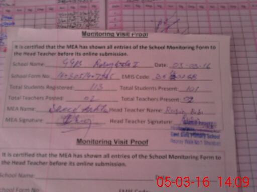 | Attendance Register | Head Teacher | MEA with School | Visit Proof |