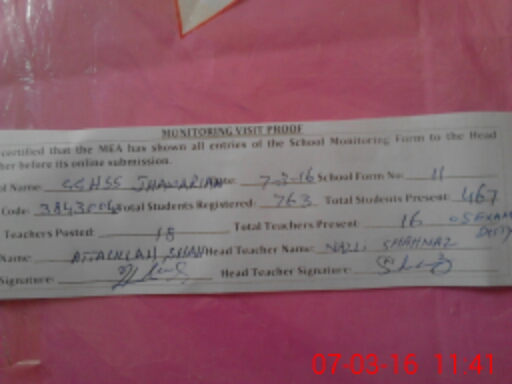 | Certified that this School was Inspected by the Undersigned MEA/DMO Today and the Information Stated Above is as Per Record. | |||||