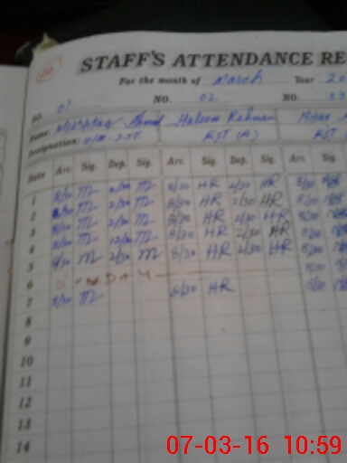 | CNIC | Full Name | Designation | R/C | Absence During Last Calender Month |