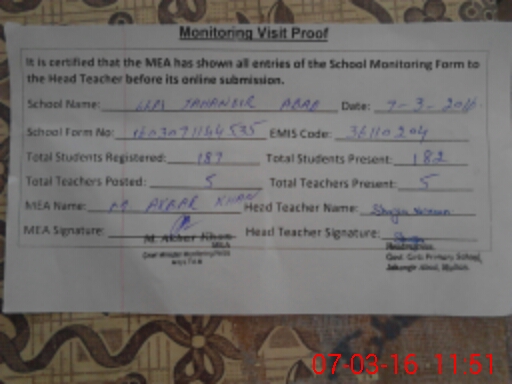 | Certified that this School was Inspected by the Undersigned MEA/DMO Today and the Information Stated Above is as Per Record. | |||||