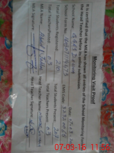 | Certified that this School was Inspected by the Undersigned MEA/DMO Today and the Information Stated Above is as Per Record. | |||||