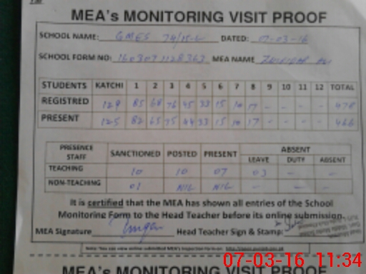 | Certified that this School was Inspected by the Undersigned MEA/DMO Today and the Information Stated Above is as Per Record. | |||||