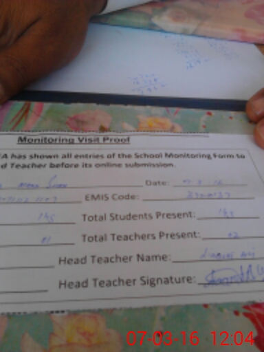 | Attendance Register | Head Teacher | MEA with School | Visit Proof |