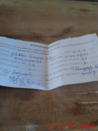 | Attendance Register | Head Teacher | MEA with School | Visit Proof |