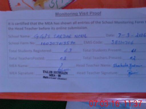 | EMIS Code: 38110706 | Name of School: GGPS SARDAR NOUL | |||