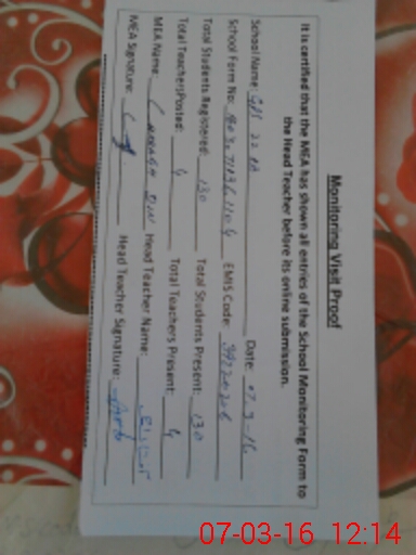 | Certified that this School was Inspected by the Undersigned MEA/DMO Today and the Information Stated Above is as Per Record. | |||||