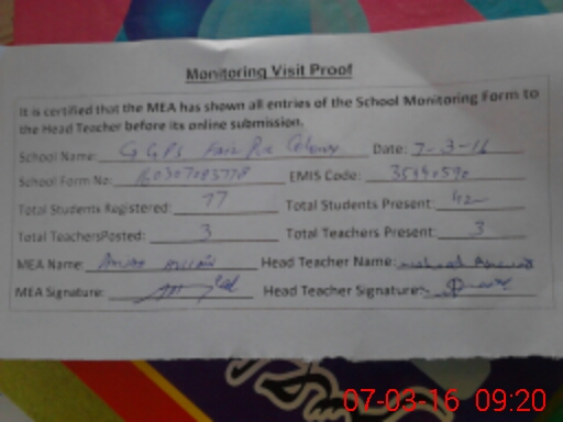 | EMIS Code: 35440590 | Name of School: GGPS FAIZ PUR COLONY | |||