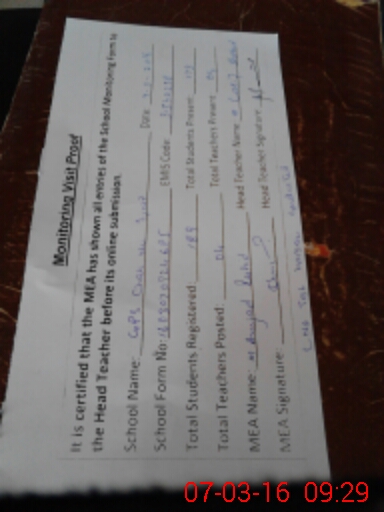 | Certified that this School was Inspected by the Undersigned MEA/DMO Today and the Information Stated Above is as Per Record. | |||||