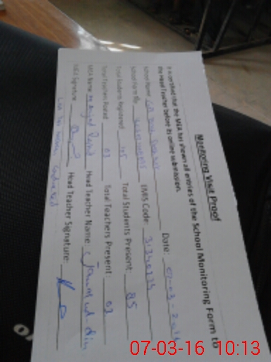 | Attendance Register | Head Teacher | MEA with School | Visit Proof |