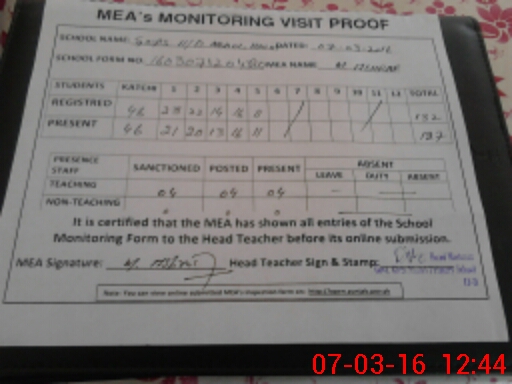 | Attendance Register | Head Teacher | MEA with School | Visit Proof |