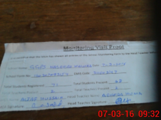 | EMIS Code: 31150247 | Name of School: GGPS NASEERA KALU KA | |||