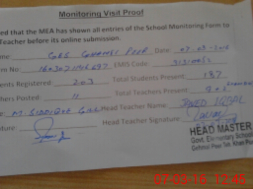 | EMIS Code: 31310052 | Name of School: GES GEHMAL PEER | |||