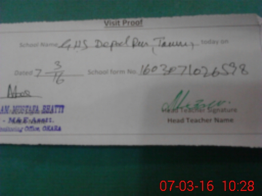 | EMIS Code: 39310010 | Name of School: GHS DEPALPUR TOWN | |||
