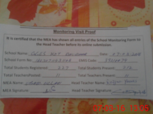 | EMIS Code: 39210074 | Name of School: GGES KOT BHUBHAR | |||