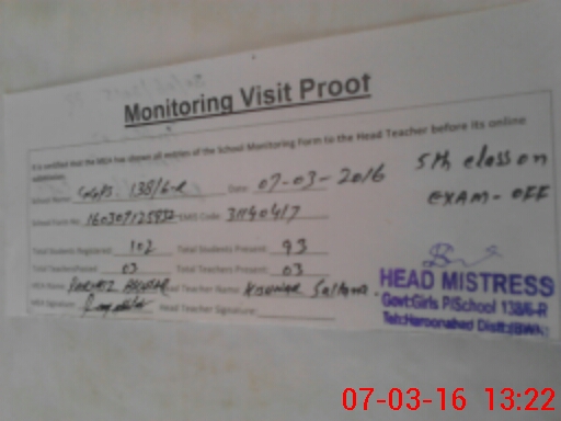 | EMIS Code: 31140417 | Name of School: GGPS CHAK NO 138/6-R | |||