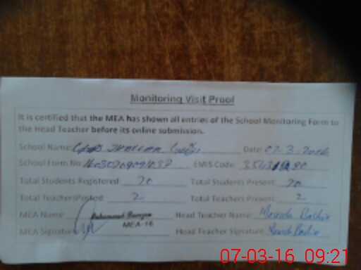 | Certified that this School was Inspected by the Undersigned MEA/DMO Today and the Information Stated Above is as Per Record. | |||||