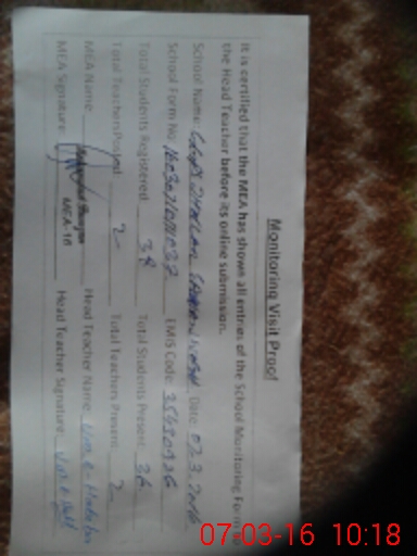 | Certified that this School was Inspected by the Undersigned MEA/DMO Today and the Information Stated Above is as Per Record. | |||||