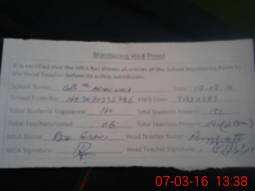 | Certified that this School was Inspected by the Undersigned MEA/DMO Today and the Information Stated Above is as Per Record. | |||||