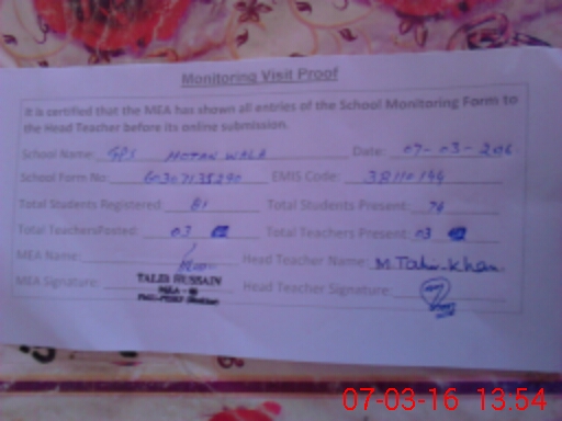 | EMIS Code: 38110144 | Name of School: GPS HOTAN WALA | |||