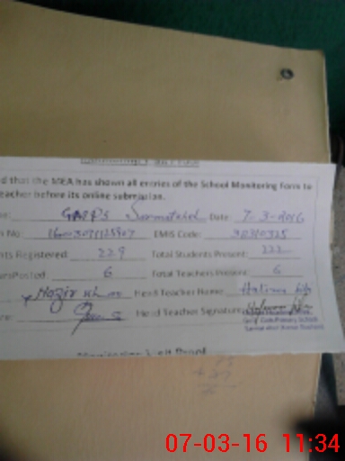 | EMIS Code: 38310325 | Name of School: GMPS SARMAT KHEL | |||