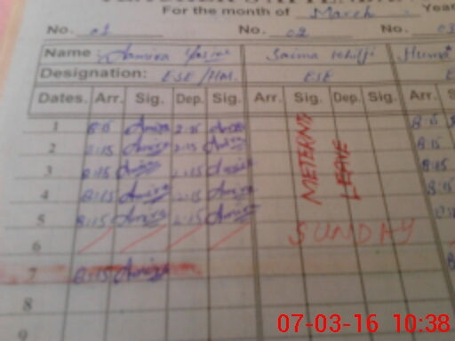 | CNIC | Full Name | Designation | R/C | Absence During Last Calender Month |