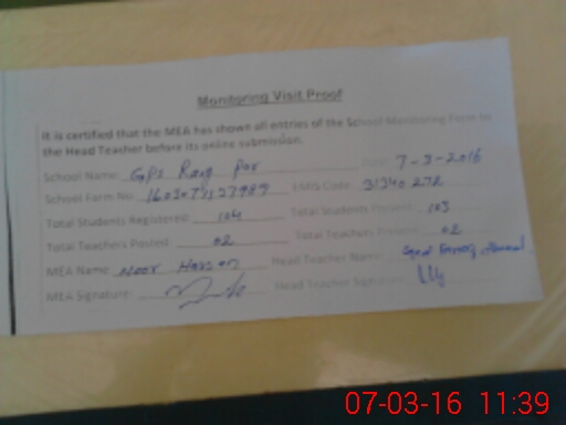 | EMIS Code: 31340272 | Name of School: GPS RANG PUR | |||