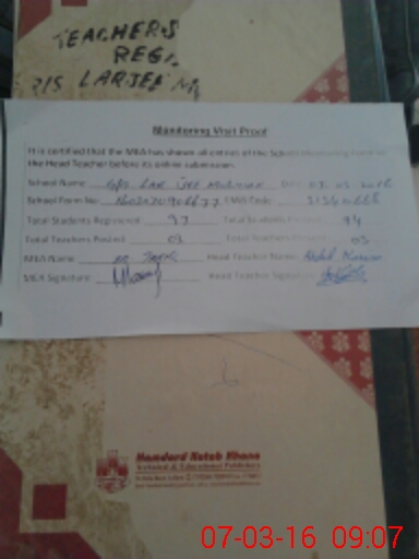 | Certified that this School was Inspected by the Undersigned MEA/DMO Today and the Information Stated Above is as Per Record. | |||||