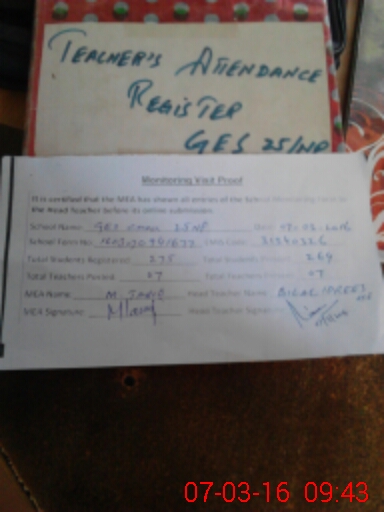 | Attendance Register | Head Teacher | MEA with School | Visit Proof |