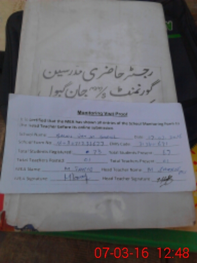 | Attendance Register | Head Teacher | MEA with School | Visit Proof |