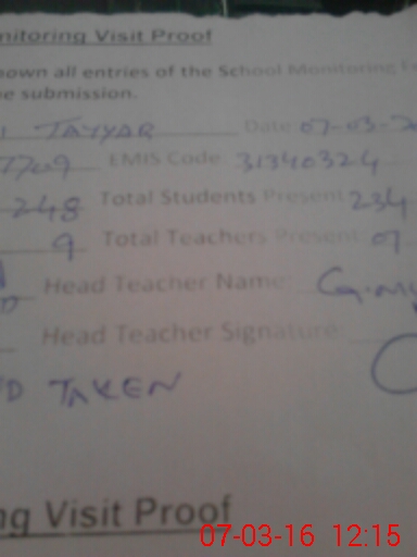 | Attendance Register | Head Teacher | MEA with School | Visit Proof |