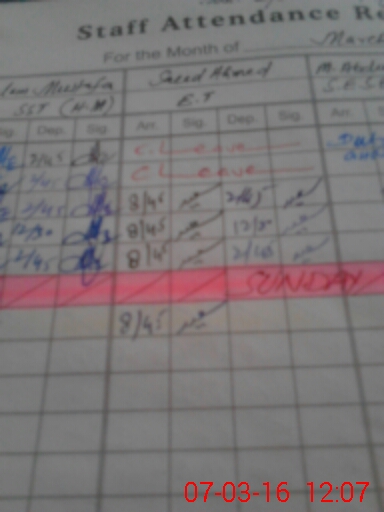 | 31**** | Mu**** Ab**** Sh**** | S.E.S.E.(SCIENCE) | 0 | 7 | 0 | 0 | 0 | 0 | 0 | 0 | 0 | Exam Duty | |