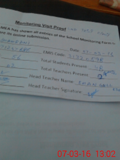 | Certified that this School was Inspected by the Undersigned MEA/DMO Today and the Information Stated Above is as Per Record. | |||||