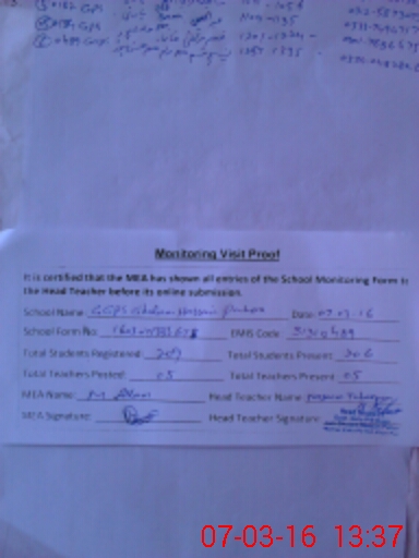| EMIS Code: 31310489 | Name of School: GGPS BASTI JAM GHULAM HASSAN PAHOR (After Noon) | |||