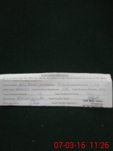 | Attendance Register | Head Teacher | MEA with School | Visit Proof |