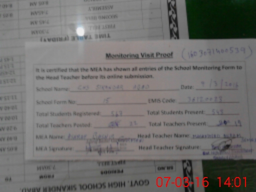 | Certified that this School was Inspected by the Undersigned MEA/DMO Today and the Information Stated Above is as Per Record. | |||||