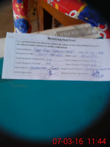 | Attendance Register | Head Teacher | MEA with School | Visit Proof |