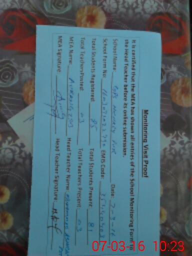 | Certified that this School was Inspected by the Undersigned MEA/DMO Today and the Information Stated Above is as Per Record. | |||||