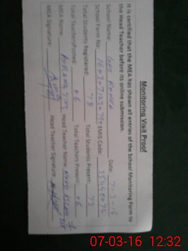 | Attendance Register | Head Teacher | MEA with School | Visit Proof |