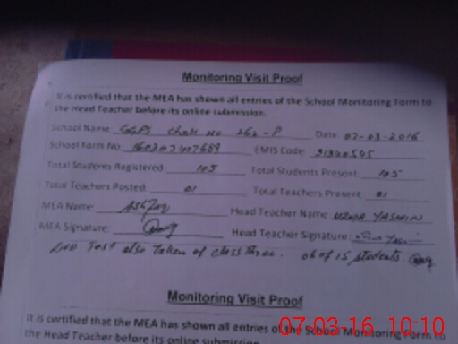 | Certified that this School was Inspected by the Undersigned MEA/DMO Today and the Information Stated Above is as Per Record. | |||||