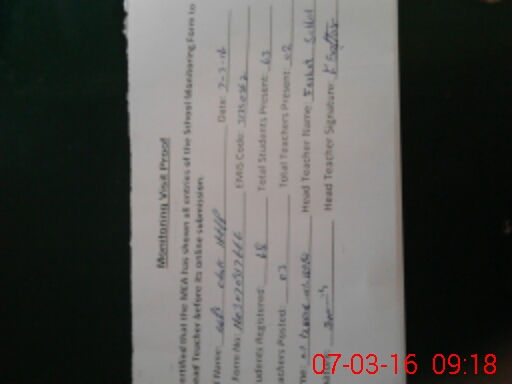 | Monitoring Date: 07-03-2016 | Start Time: 07-03-2016 09:03 AM | End Time: 07-03-2016 09:20 AM | Name of MEA: Mu**** Iz**** UlHa**** | |