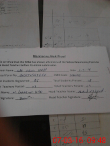 | Monitoring Date: 07-03-2016 | Start Time: 07-03-2016 09:30 AM | End Time: 07-03-2016 09:53 AM | Name of MEA: Mu**** Iz**** UlHa**** | |