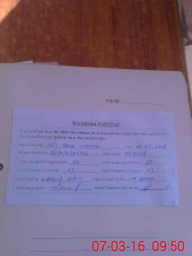 | Attendance Register | Head Teacher | MEA with School | Visit Proof |