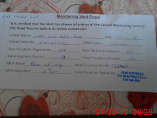 | EMIS Code: 31330632 | Name of School: GMPS BASTI TALIB SHAH | |||